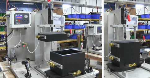 The above machine was designed to test EV battery modules. In this design, a sealed module is placed in a chamber on a manual slide. The slide is moved in under the lid, and the part is actuated. Using the Sentinel I28, we then conduct a volumetric fill first to test for gross leaks, then finalize it with a low-limit no-water leak rate, in this case, in the 1-3 scc/m range, to meet the required IP specifications common when leak testing battery modules.
