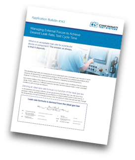 View the Managing External Forces to Achieve Desired Leak Rate, Test Cycle Time application bulletin for an overview of the variables that can impact leak test cycle time.